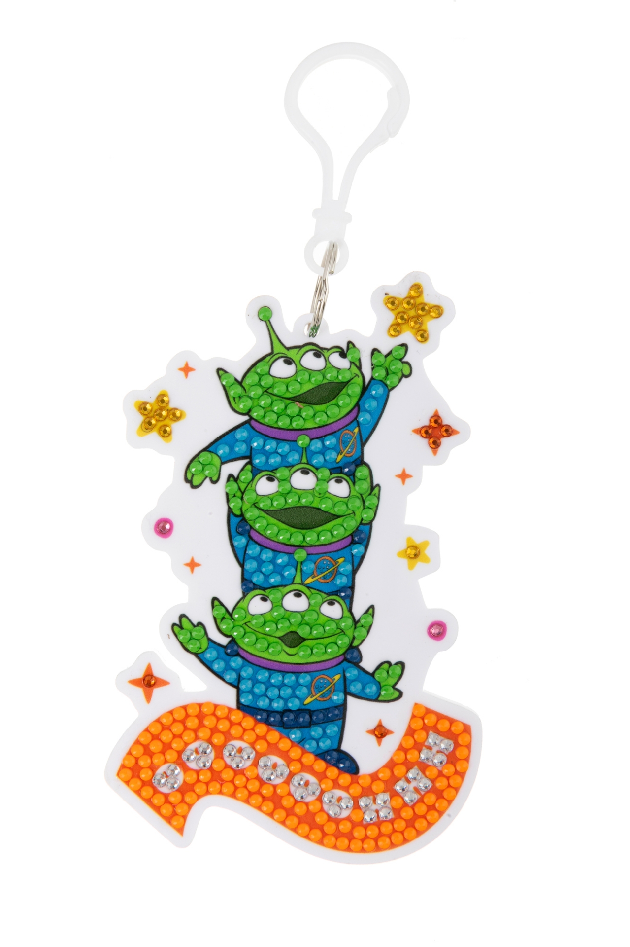 Introducing the Crystal Art Aliens Bag Charm, inspired by the nostalgic world of Hello Kitty & Friends. Featuring the lovable white puppy riding his blue Unicorn Corune, with little 'Milk' by his side, this charming design comes to life as you add each shimmering gem. Perfect for attaching to school bags, laptop cases, luggage, lunch bags or keys, it adds a touch of sparkle to every adventure.