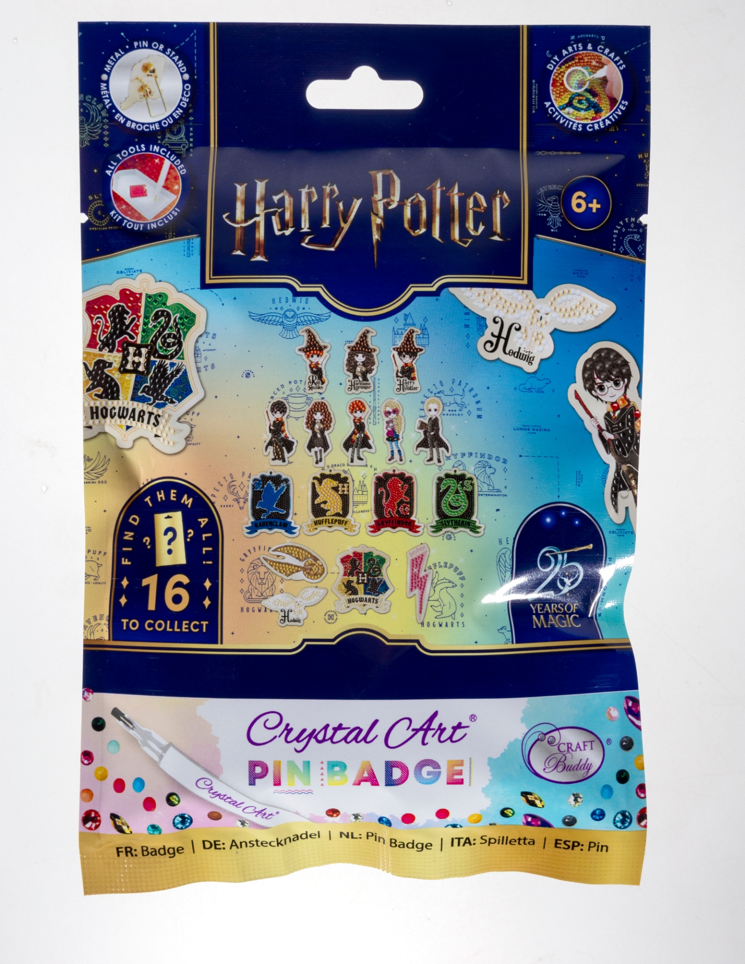 Harry Potter Crystal Art Pin Badge Blind Bag - 1 of 16 Collectible Pin Badges, Mystery Pack, Sparkling Diamond Art