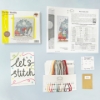 This counted cross stitch kit is worked on 14 count full colour printed Zweigart Aida with pre-sorted stranded cottons. It uses cross stitch, back stitch and couching. This kit also includes fluffy Lana threads, metallic threads, velcro, star sequins, two needles, a clear chart and instructions. The finished design size is 26cm by 26cm. This kit is based on original artwork by Jane Sunner